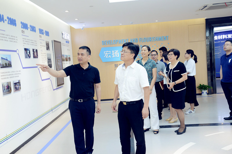 卓高柱會長一行參觀了“世界宏豐”展示廳。該展示廳通過企業(yè)宣傳片、科研成果、產(chǎn)品展示三大篇章,展現(xiàn)了電接觸材料的發(fā)展以及溫州宏豐的過去、當下和未來。