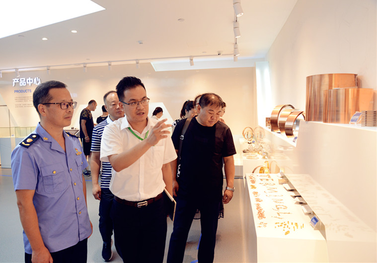 為學(xué)習(xí)沿海開放城市優(yōu)秀企業(yè)的先進(jìn)經(jīng)驗(yàn)和發(fā)展模式,8月9日上午,新疆阿克蘇市場監(jiān)管局的20位領(lǐng)導(dǎo)干部在溫州市市場監(jiān)管理局甌江口分局局長王賢林的陪同下,蒞臨溫州宏豐參觀學(xué)習(xí)。溫州宏豐董秘嚴(yán)學(xué)文等公司領(lǐng)導(dǎo)陪同參觀。