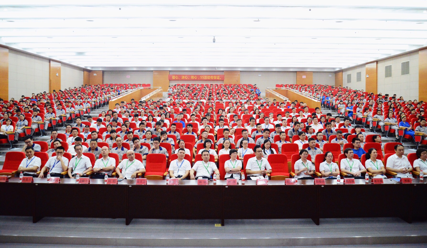 “狠下決心、強(qiáng)力推進(jìn)、追求卓越”。7月20日上午,溫州宏豐 5S管理動(dòng)員大會(huì)在甌江口廠區(qū)四樓大禮堂順利召開。大禮堂門口及廳內(nèi)懸掛著5S橫幅標(biāo)語,顯得醒目而隆重。