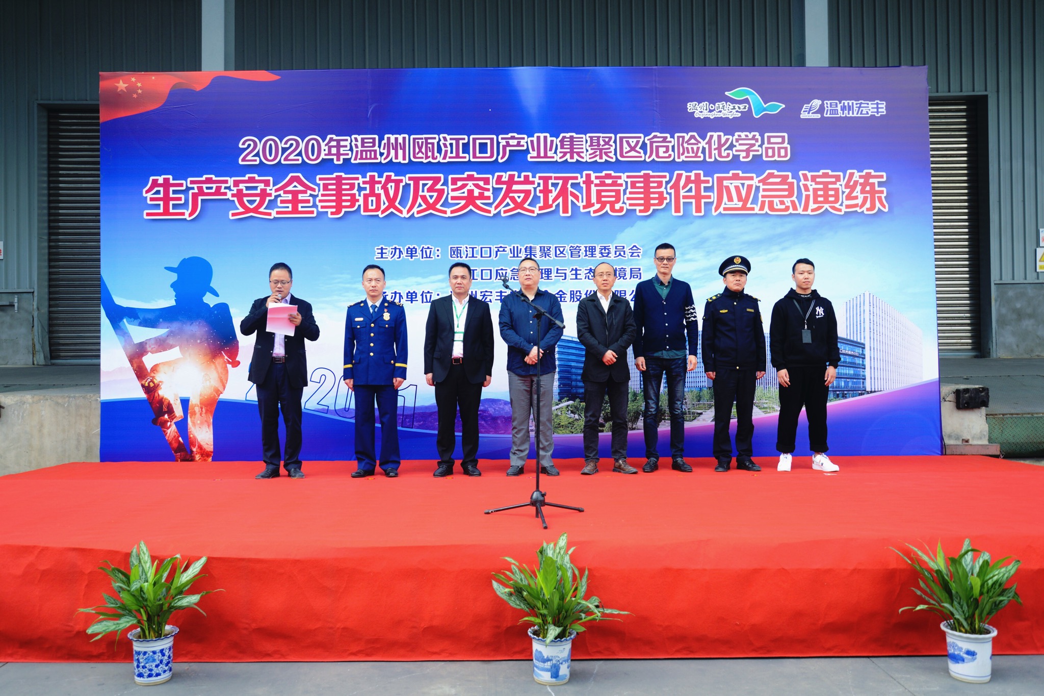 為切實(shí)提高應(yīng)急聯(lián)動(dòng)救援實(shí)戰(zhàn)能力和專業(yè)水平,發(fā)揮應(yīng)急救援機(jī)構(gòu)積極作用,強(qiáng)化應(yīng)急聯(lián)動(dòng)能力,提高應(yīng)急響應(yīng)人員的業(yè)務(wù)素質(zhì)和能力。11月12日上午,甌江口產(chǎn)業(yè)集聚區(qū)管理委員會(huì)、甌江口應(yīng)急管理與生態(tài)環(huán)境局聯(lián)合溫州宏豐組織開(kāi)展了2020年度危險(xiǎn)化學(xué)品生產(chǎn)安全事故及突發(fā)環(huán)境事件應(yīng)急演練。甌江口產(chǎn)業(yè)集聚區(qū)黨工委委員、管委會(huì)副主任周舟,甌江口應(yīng)急管理生態(tài)局局長(zhǎng)林榮,副局長(zhǎng)孫決策、范芙斌,溫州宏豐董事長(zhǎng)兼總裁陳曉等政府、公司領(lǐng)導(dǎo)出席演練開(kāi)幕式。演練由公司副總裁、安全辦主任周慶清擔(dān)任現(xiàn)場(chǎng)總指揮。