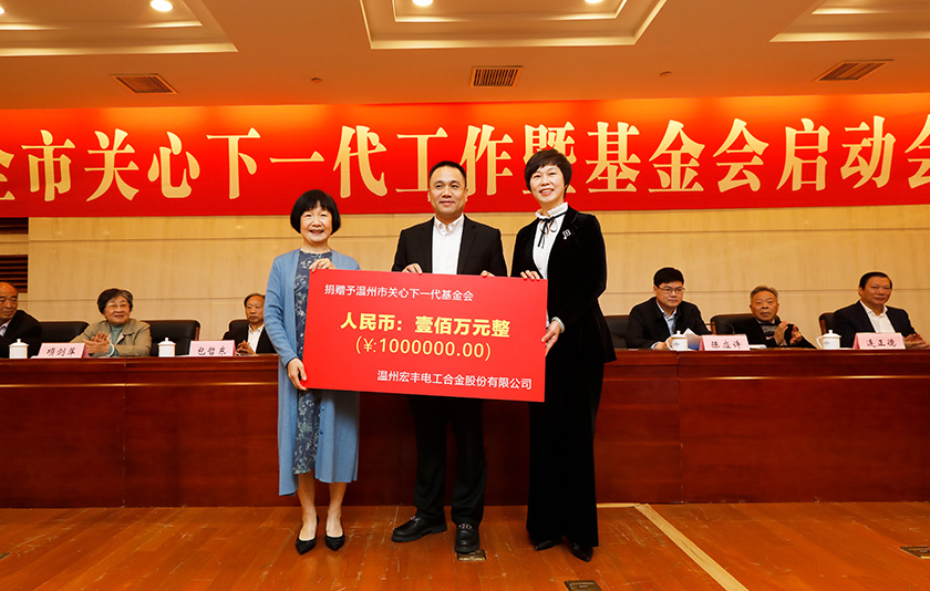4月14日,公司董事長兼總裁陳曉先生代表溫州宏豐向市關(guān)心下一代基金會捐款100萬元人民幣,為推動崇高事業(yè)薪火相傳,奮力書寫溫州市關(guān)心下一代事業(yè)新篇章,實現(xiàn)溫州高質(zhì)量跨越式發(fā)展貢獻企業(yè)應(yīng)有力量。