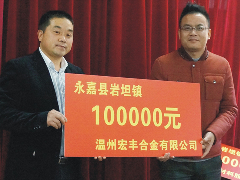 2月5日,溫州宏豐捐助十萬(wàn)元為永嘉縣巖坦鎮(zhèn)扶貧幫困,傳遞了扶貧濟(jì)困、無(wú)私奉獻(xiàn)的宏豐正能量。